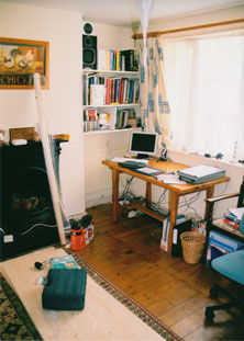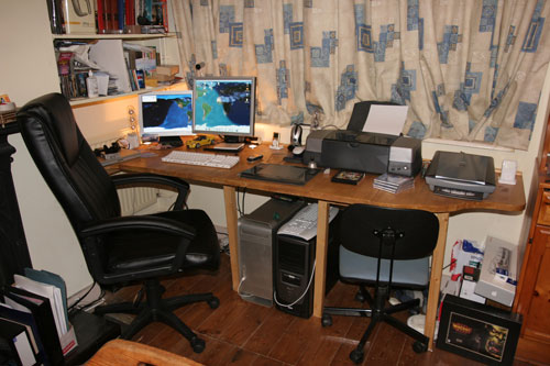When you live on your own, computing on the dining room table isn’t really a problem. Especially if you’re a geek AND a student. When you have mates round, you just eat pizza on the sofa.