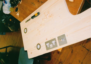 Hmmm… it’d be cool if I could have surface-mounted plug sockets for charging my phone and laptop and stuff. Oooh, and lights would be nice, to backlight the desk a bit for better light. Although, I would have to carve the cavities for these fairly carefully to match the mounts they have. Hmmm, my powersaw is a bit too much for that. Ah well.