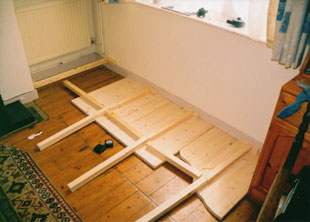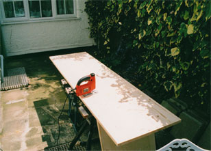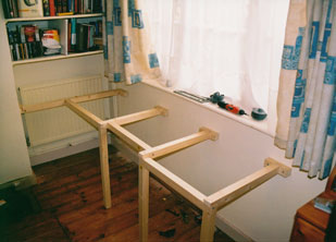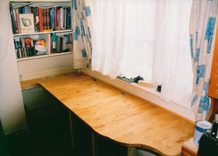 Completed! It’s strong and sturdy - it can hold the weight of all my computer stuff and me standing on it. It matches the furniture. It’s varnished with floor varnish, so it’s good and tough.