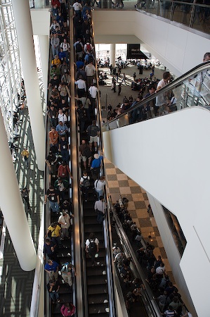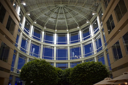 The third community event I attended was the Apple Campus bash, which was held at Apple’s headquarters in Cupertino. We were all herded onto buses for the 40 minute drive over there. The campus is pretty impressive! The photo below shows the inside of the main building’s lobby.
