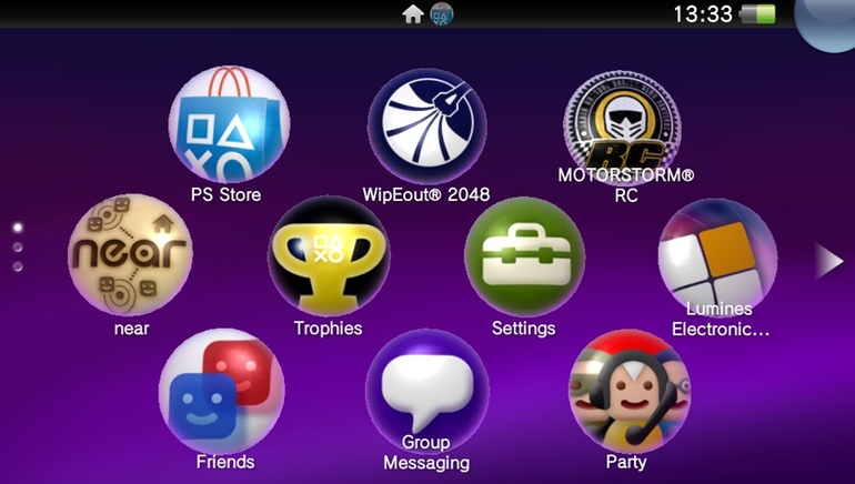 • The Vita displays applications as pebbles on a vertically scrolling grid. Each “screen” can hold ten pebbles, which can be moved around freely.