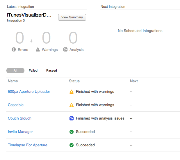 I love Continuous Integration. I’ve never bothered with it for my side projects since it didn’t seem worth the effort, but now it’s built into Xcode I thought “This is Apple! Two clicks and I’m done, right?”