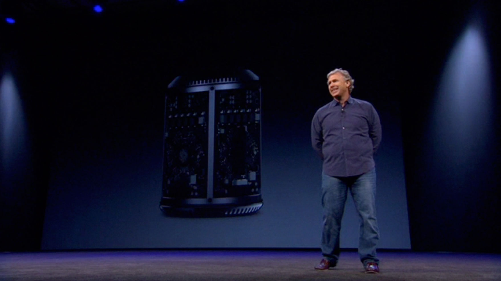 Wait, what’s this? Sneak peek of new Mac hardware? Finally, the new Mac Pro! Everyone cheers. I cheer. I feel a little bit sad that now the iMacs are powerful enough for everything I need I can’t justify the expense of a Mac Pro any more, but I’m excited. “We’re going to go a little over the top…” says Phil.